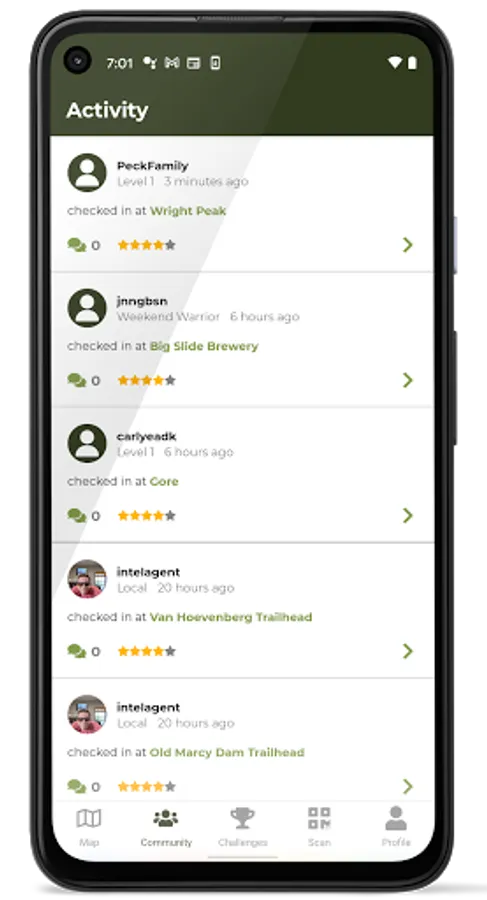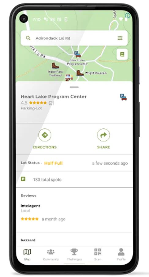 Popular features on the app include but are not limited to checking the capacity status of select parking lots in the Adirondack Park, tracking hiking challenges, and interacting with the Adirondack community on the activity feed.