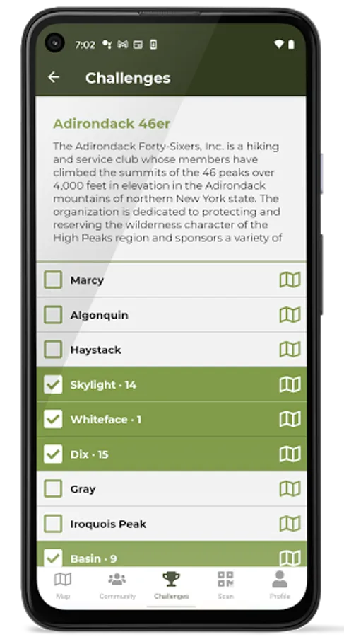 Track your progress on the classic Adirondack challenges, including the ADK 46er, Saranac Lake 6er, Lake George 12ster, and many more