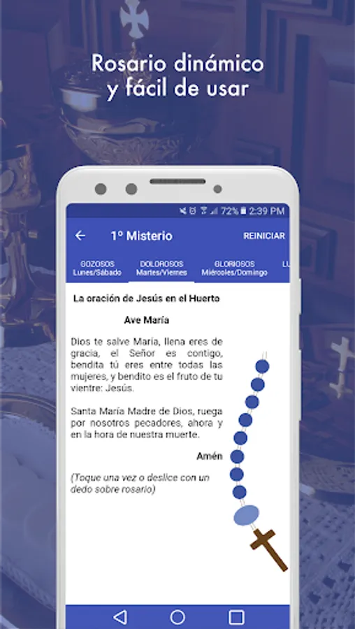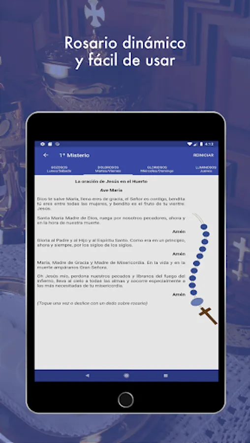About Icon: Monogram, also Cristograma- P and X represents since the early days of Christianity Christ circular button colors are the liturgical colors and are with respect to the liturgical calendar: starting up is: Lent (purple); following the direction of the hands on a clock we are: Palm Sunday (red), Maundy Thursday (white), Good Friday (red), Easter (white), Pentecost (red), Sma. Trinidad (white), Corpus Christi (white), Ordinary Time (green); almost reaching 9: Christ the King (white), Advent (purple), Christmas (white) and Ordinary Time (green). In the Widget Stole and automatically change color according to this calendar (change the date of your phone to check, but do not forget to return it to the correct date).