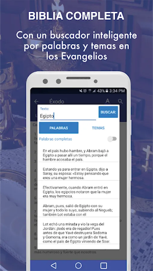 - Searches in the Bible verses, titles, etc.