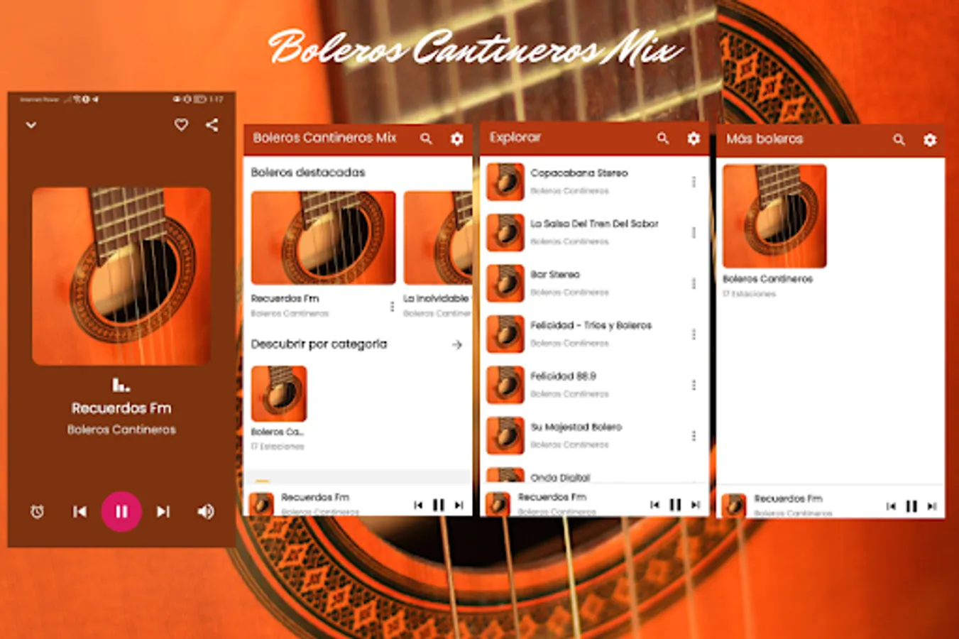 Boleros Cantineros Mix with a modern and elegant interface, you also have the option to select super fast access to your favorite radio stations.