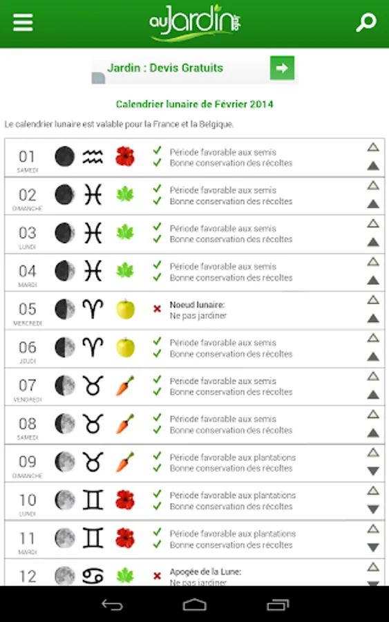 The timetable shows all actions to achieve for each month of the year. You also have a lunar calendar to adapt the work according to the moon.