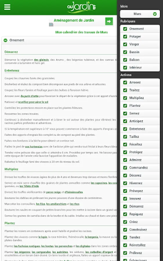 Find all the factsheets Site www.auJardin.info for gardening, for the ornamental garden, the garden, the pool or home.