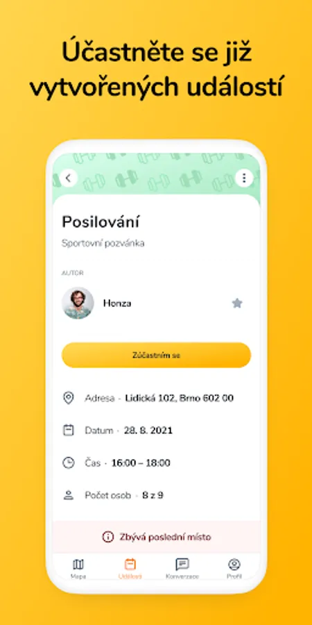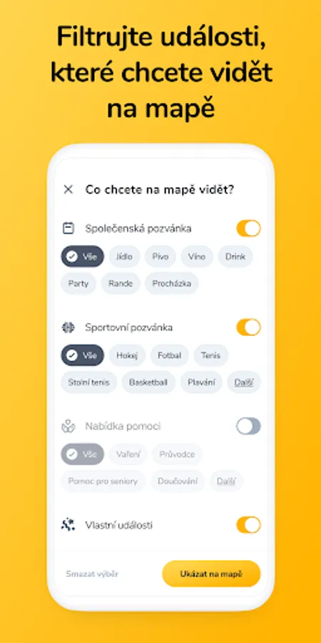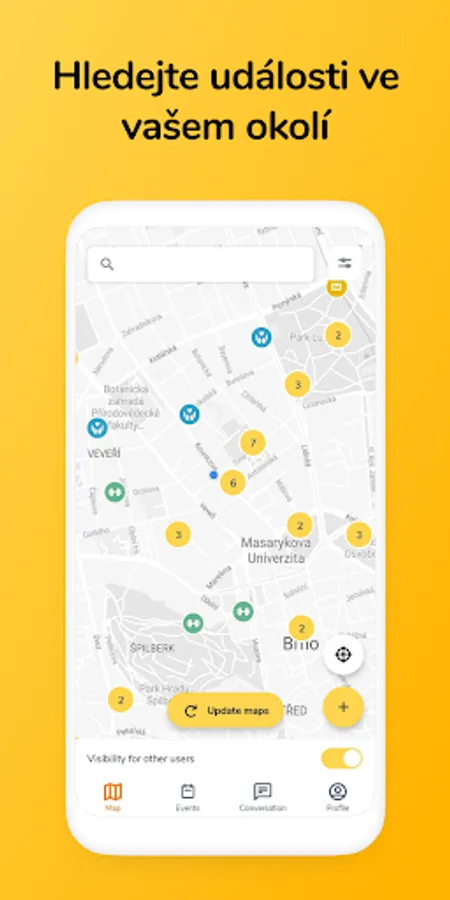 Create a defined or custom event. Put it on the map and decide whether your friends or the whole world will find out about it.