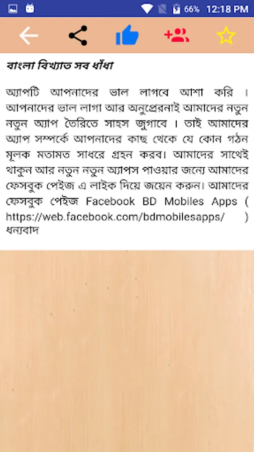 The puzzle or dhadha is a significant section of Bengali entertainment. The bangla dhadha is also called the Heyali. The words of the people of the rural areas have been recorded as bangla dhada. There are many types of dada bangla or puzzles, such as funny jokes or puzzle games, math dhadha etc. People from the rural areas of the past used to entertain themselves with various gram bangla dada fun, because there was no radio or television in those days. That is why they used their leisure time to say bangla dhadha with answer or stories. Our dhadha bangla Awesome Bangla App will remind you of the past, you will not have to buy or find any puzzle or gram banglar dada as a way to increase your intellect. if you need to entertainment so download bangla dada app.