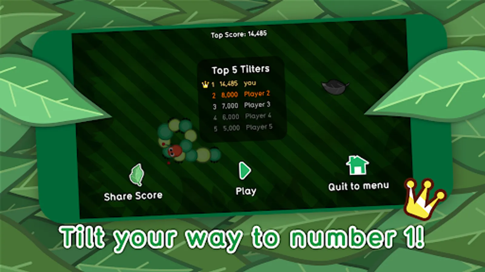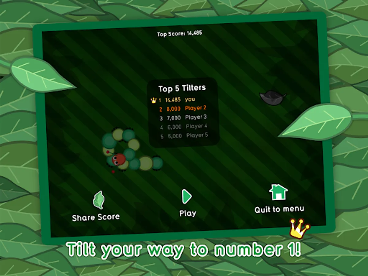 In the world of Tilterpillar, you control a caterpillar on the look out for some tasty leaves to eat. There's only one catch, the more you eat, the more you grow! Test your skills in this "snake" like game by eating different leaf types and avoiding crashing into things.
