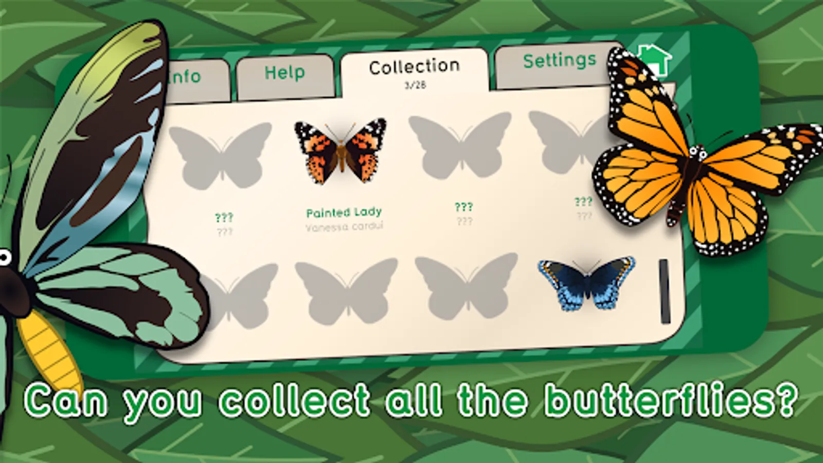 After each session you will be awarded level up points, collect enough of these to unlock up to 28 different butterflies!