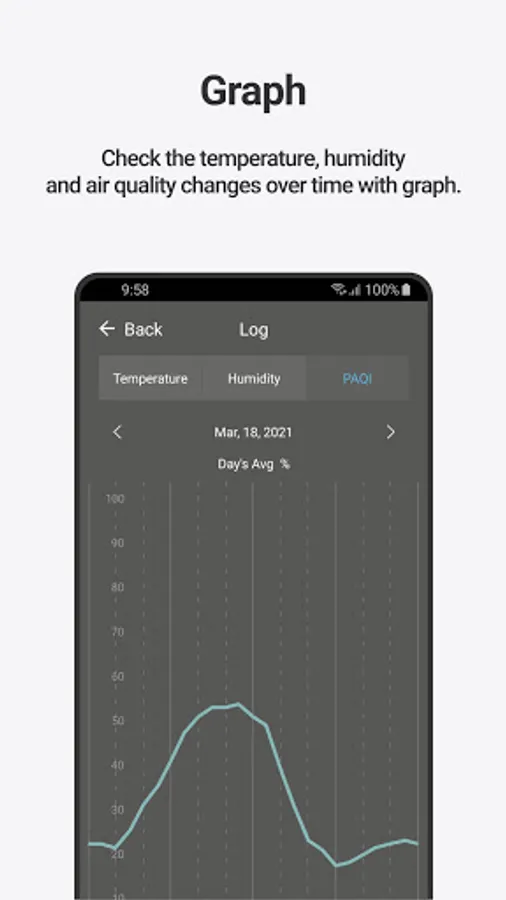 2. Log Graph: Automatically record your environment data for up to 7 days, and display the history in graph.