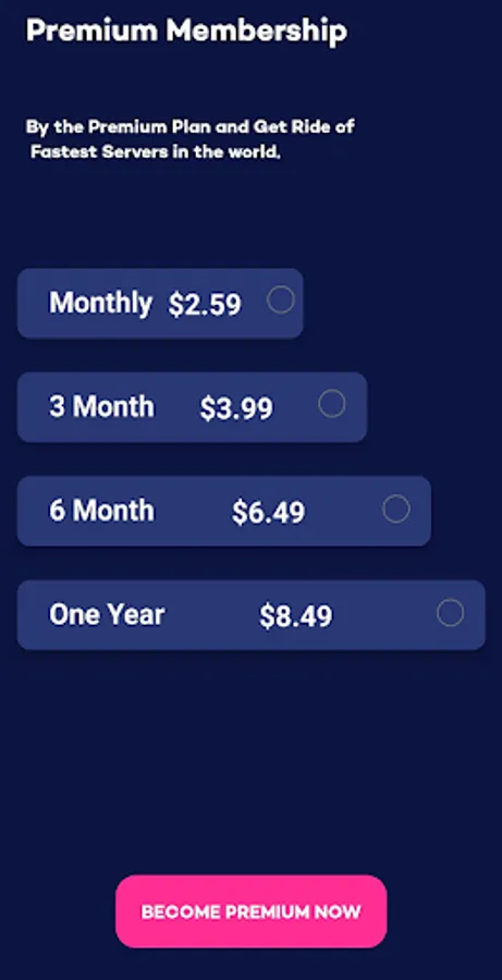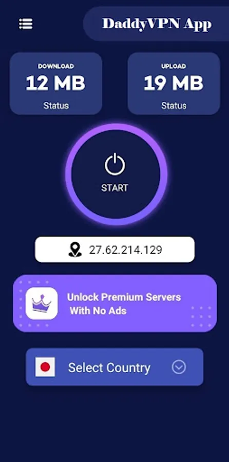 DaddyVPN App - is very fast and secure vpn app with unlimited bandwidth and lot of secure servers in this app when you click on select option you can see vpn server lists. In this app you can connect any country server on only one click. when you connect with any server you can see kbs speed now You can easily unblock those ego-restricted websites and gain access. If you want to Become Pro member Just click on remove ads and enjoy ads free app.