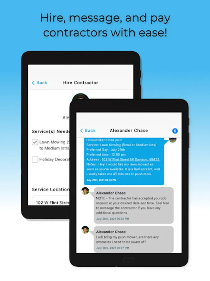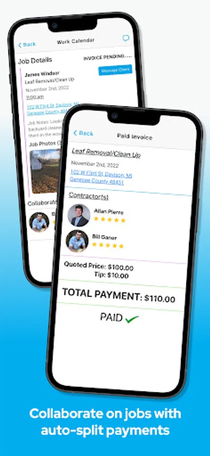 5) Once your job is completed, our contractor(s) will send you an invoice that you can pay directly in the app.