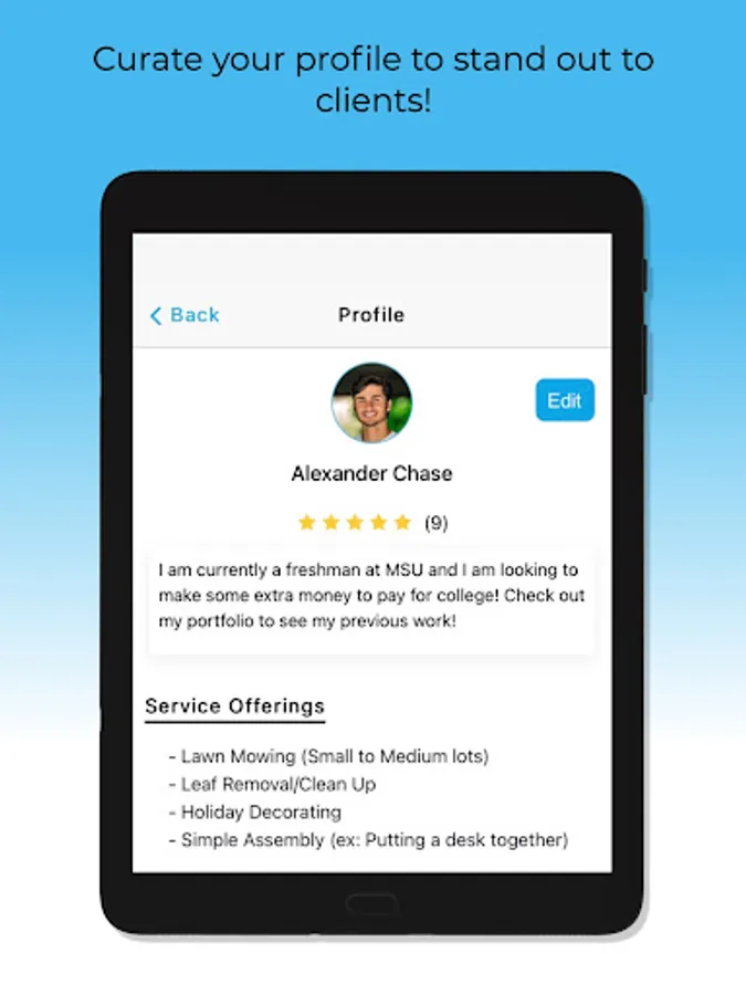 3) Customize your Gas Money Profile by uploading a profile picture, writing a unique bio, and uploading relevant pictures to your job portfolio.