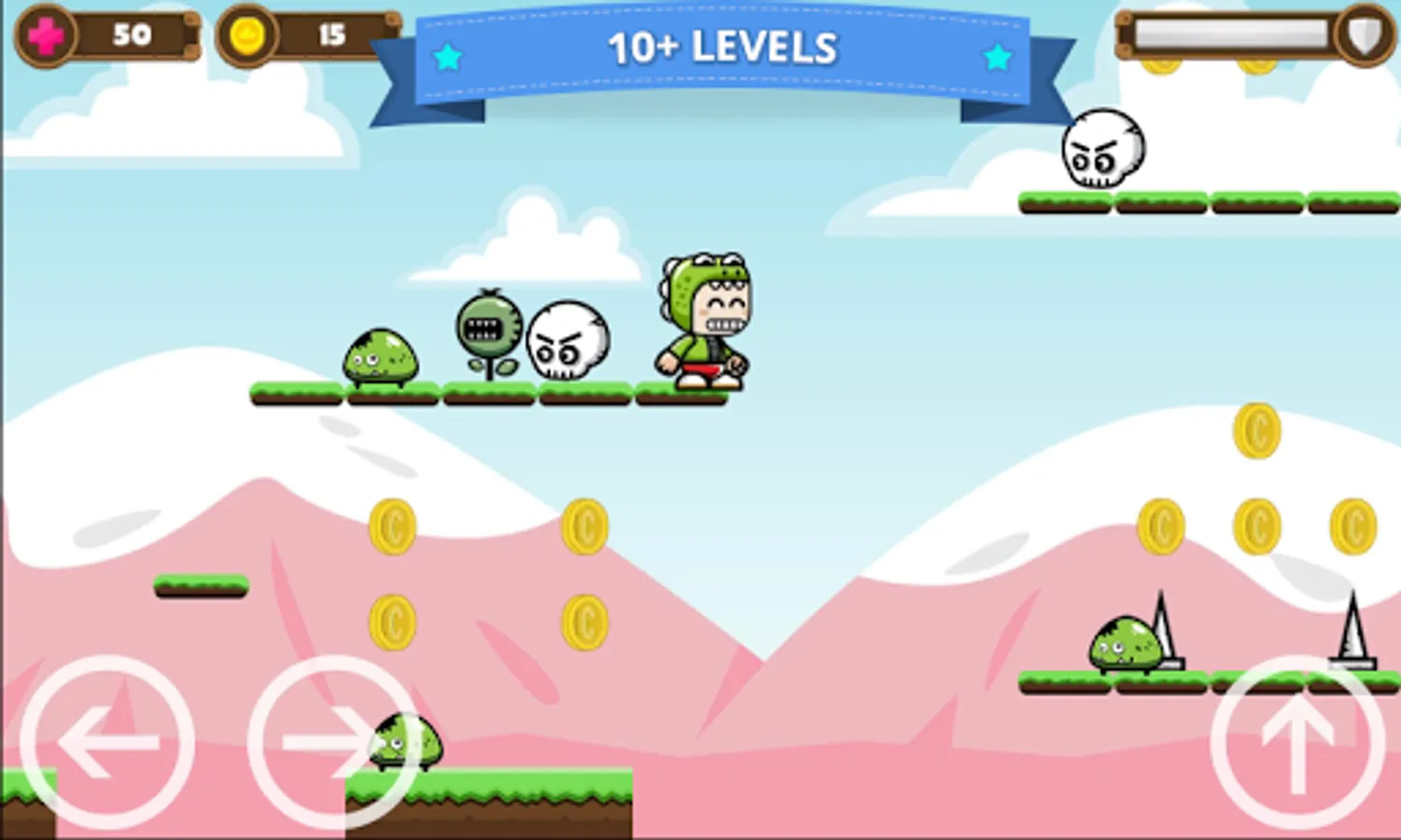 SUPER ADVENTURE WORLD is a free class adventure game for your Android! Run and jump to collect gold coins and kill enemies in this Jungle Adventure games. Try this fun games now.