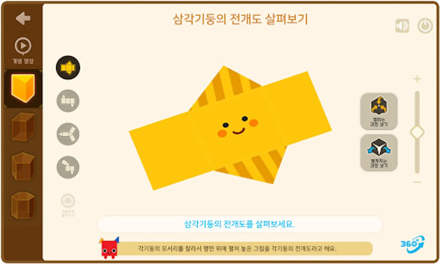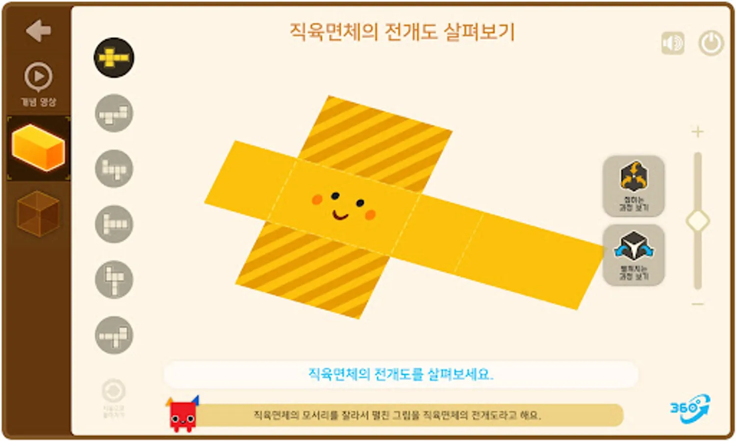3. You can see various developments by folding and unfolding the development of prisms and cylinders and rotating them 360 degrees.