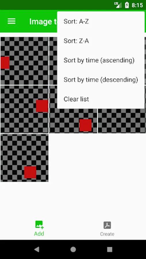 *. Delete one (swipe to right) or all images (in menu "Clear list").