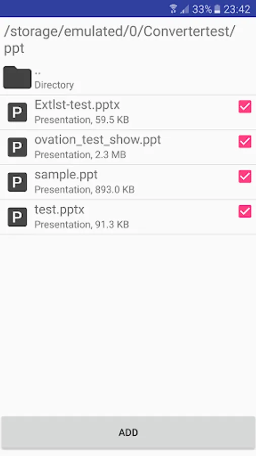 With our Converter you can add to task several documents at once, simply select the built-in file manager multiple documents and click "Add".