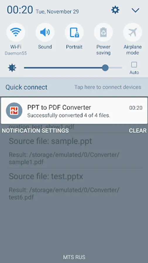And this is it. You just have to wait for the result. You can minimize the app without any limitations, the whole process will happen in background. You can see the progress of the conversion in the notifications.