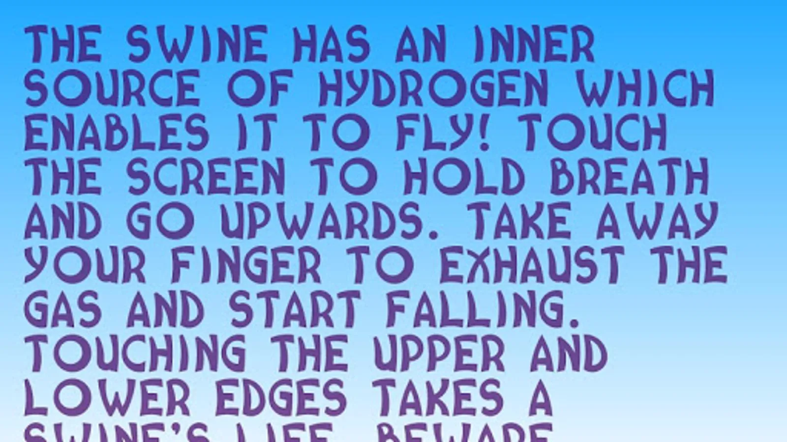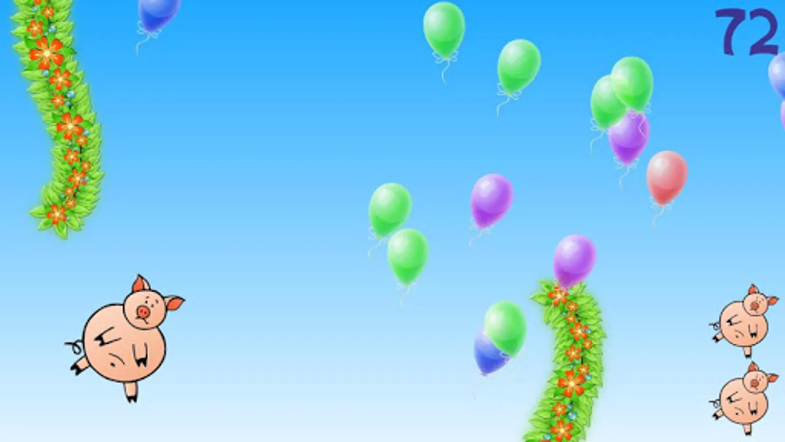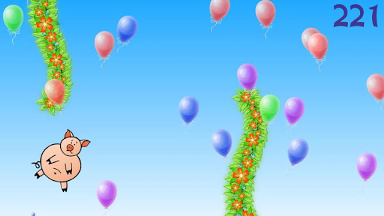 The swine has an inner source of hydrogen which enables it to fly! Touch the screen to hold breath and go upwards. Take away your finger to exhaust the gas and start falling. Touching the upper and lower edges takes a swine's life. Beware flower garlands, the swine will lose all flying abilities upon bumping into one. And finally, your goal is to break as many balloons as you can!