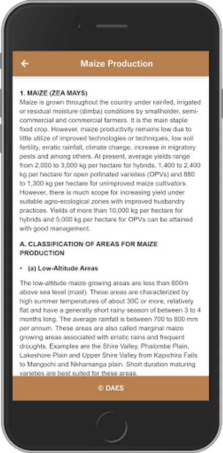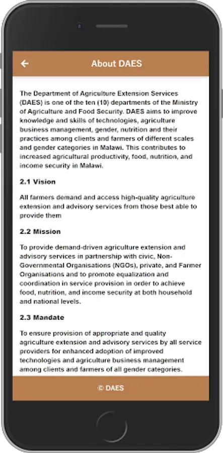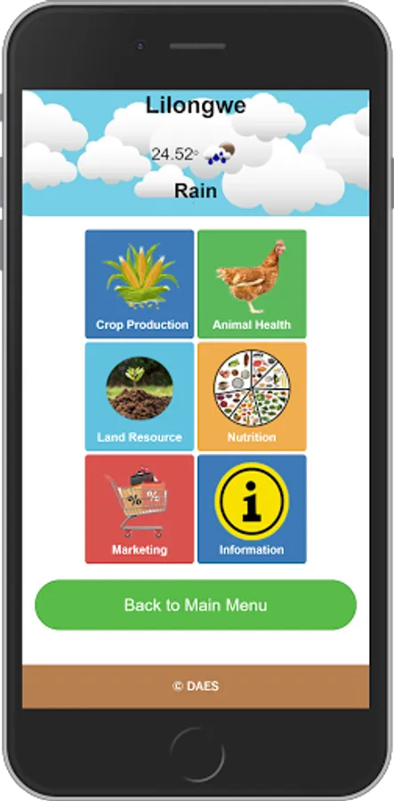 DAES v1mobile application provides farmers with valuable information that helps them improve their planting, cultivating, and harvesting. This information includes agricultural best practices, weather forecasts, and data on disease epidemics.