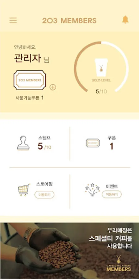 Through my app, you can check out various benefits such as stamps, coupons, events, and product verification.