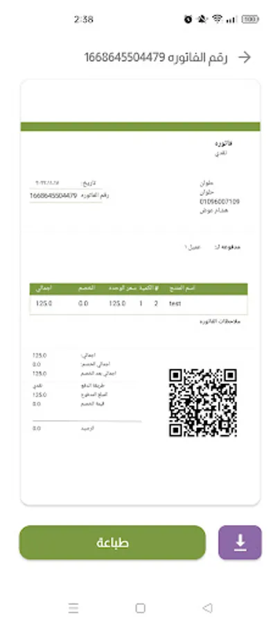 Recording a sales invoice and the possibility of sending it via WhatsApp or printing it with the logo