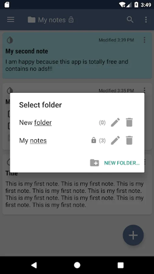 ★ Each folder can be protected with a password (all notes and images in password protected folders are encrypted using AES encryption algorithm). Passwords are not stored anywhere, so without knowing a folder password it's impossible to get access to notes in that folder;