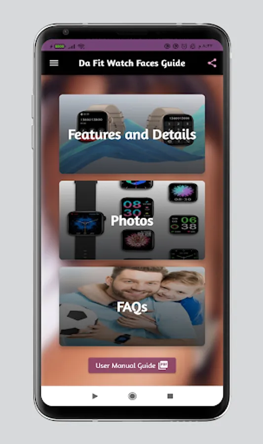 In da fit watch faces guide app we supported many sections of content that will let you now more information about da fit watch faces guide