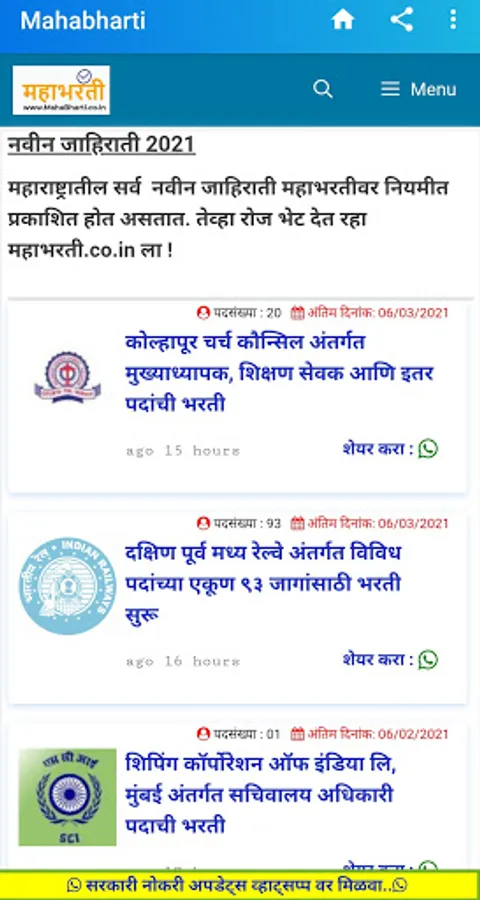 Hello, On MahaBharti Lite (MahaBharti App 2022) Find Jobs in Following Categories - NMK Jobs, NMK, Majhi Naukri jahirati