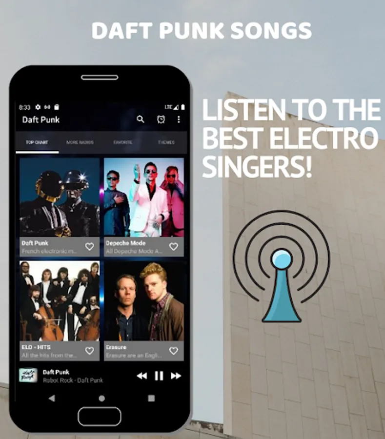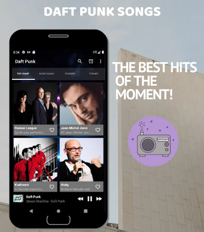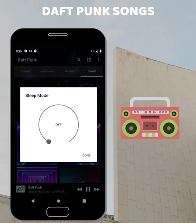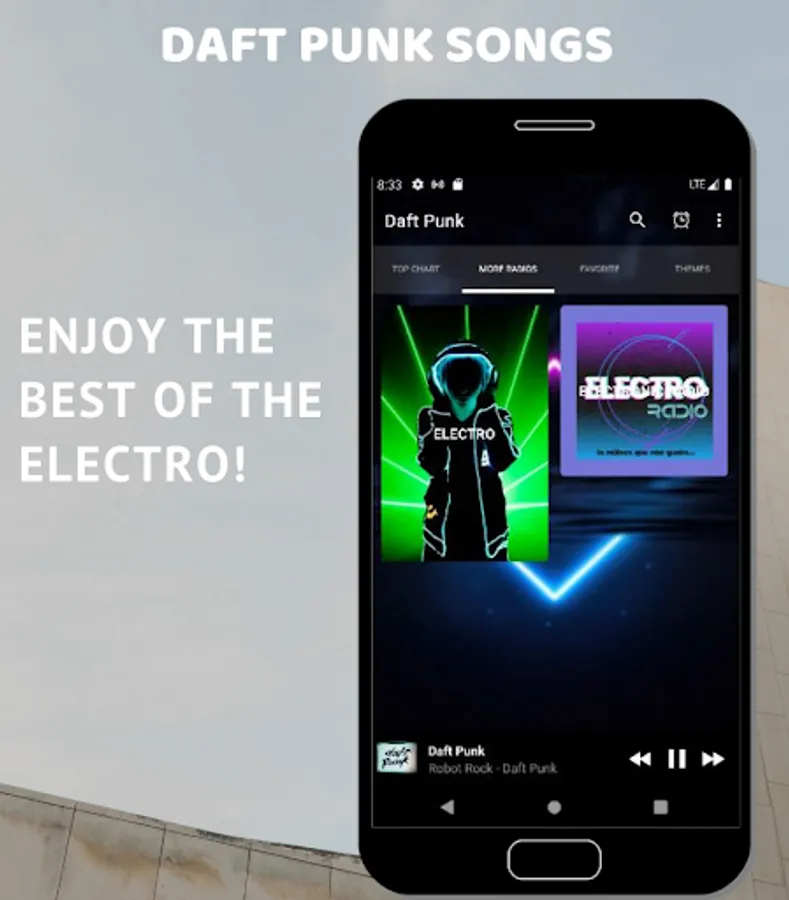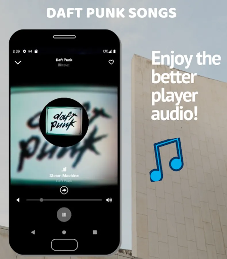 The Daft Punk Songs-Toda La Musica app is available for download on Google Play for free. Users can listen to streaming music without registering or creating an account.
