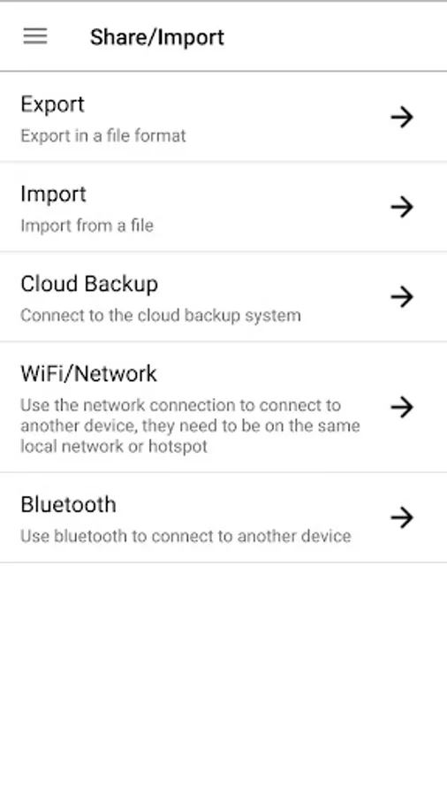 Backup and restore functionality built in (to Internal storage); auto backup frequency or no auto backups, change where backups go