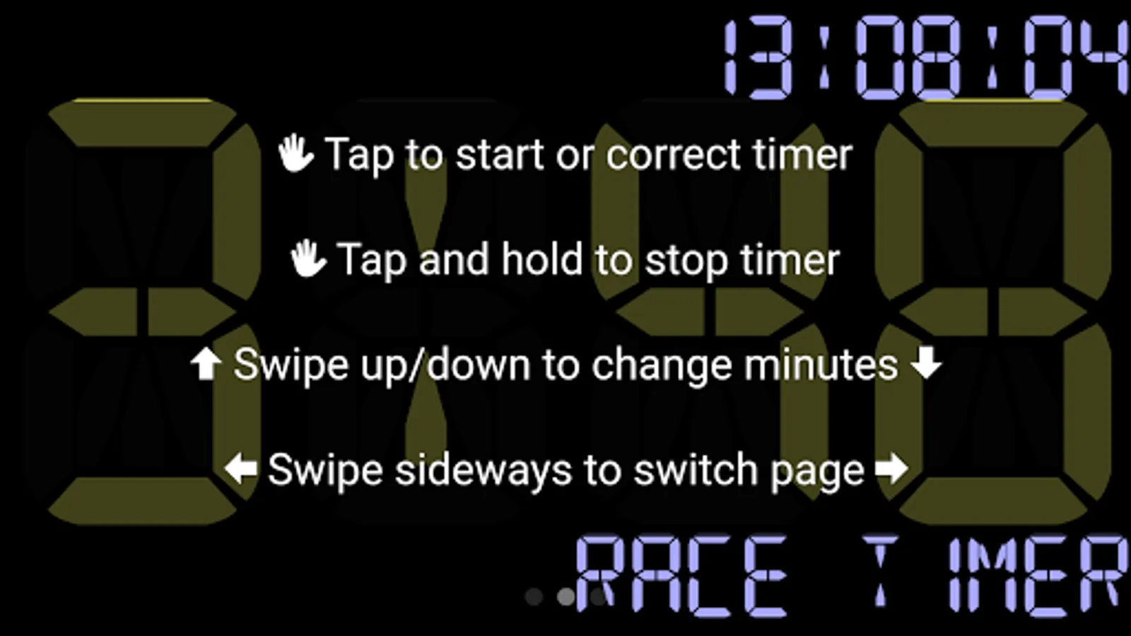 • Adjust timer minutes by swiping up/down on the Race Timer Display