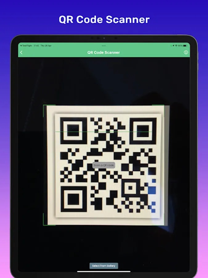 Through this tool, the device can read QR codes by scanning or from the gallery for information and payments.