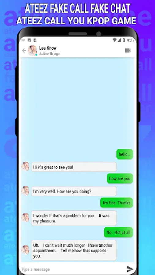 Hi ATINY ….. ATEEZ fake video call and chat messenger simulation is a prank game app that simulate ATEEZ call you and also chat with ATEEZ all member Seonghwa, Hongjoong, Yunho, Yeosang, San, Mingi, Wooyoung and Jongho. The app will entertain and fun for you at your free time because you will get an incoming call from ATEEZ your KPOP idol. The chat messenger with ATEEZ itself also comes with fake call and video call from ATEEZ member. Using this app you can prank and show off to your friends by saying look… I have chat with ATEEZ because the chat simulation feature is very similar to real chat message. You send the text and they will reply to your text. Or, you can also brag to your friends by saying look.. I get an incoming call or video call from ATEEZ. So if you are ATINY, wait no more, download ATEEZ fake call for free today.