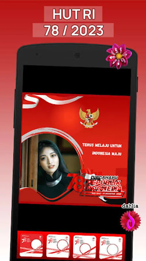 Photo Frame August 17, 2023 78th Indonesian Independence Day for social media profile photos. By using this application, you can easily choose various types of photo frames or frames with the theme of Indonesian Independence Day and this theme is professionally designed, so the appearance will be more attractive. This application has a public logo for the 78th Anniversary of Independence of the Republic of Indonesia in 2023 and has been customized with identity, templates, graphic elements and fonts. You can also call this application the Twibbon Frame for the 78th Indonesian Independence Day in 2023 because it has the same function, namely by placing your photo in the frame provided in an easy and practical way.