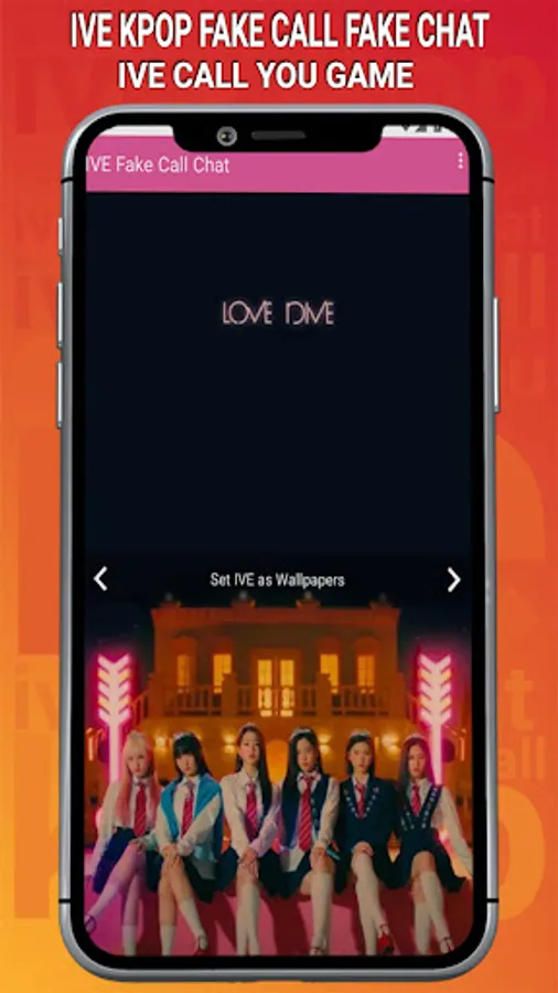 Hi DIVE…. IVE fake video call and chat messenger simulation is a prank game app that simulate IVE call you and also chat with IVE all member An Yujin, Gaeul, Rei, Jang Wonyoung, Liz, and Leeseo. The app will entertain and fun for you at your free time because you will get an incoming call from IVE your KPOP idol. The chat messenger with IVE itself also comes with fake call and video call from IVE member. Using this app you can prank and show off to your friends by saying look… I have chat with IVE because the chat simulation feature is very similar to real chat message. You send the text and they will reply to your text. Or, you can also brag to your friends by saying look.. I get an incoming call or video call from IVE. So if you are true DIVE, wait no more, download IVE fake call for free today.