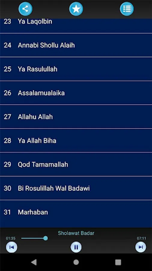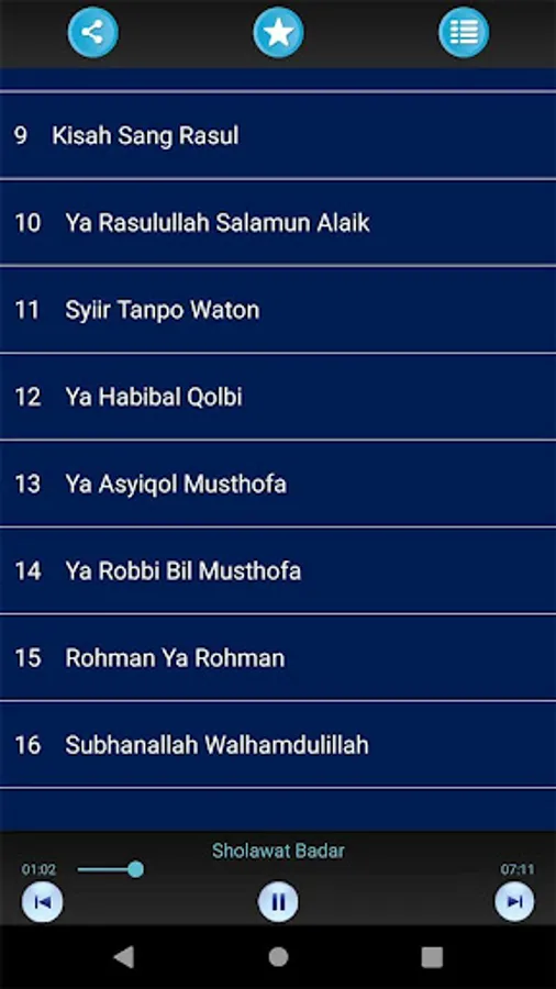 Mohon saran dan masukan serta rating untuk pengembangan aplikasi ini. Demikian sekilas gambaran mengenai aplikasi lagu Sholawat Nabi MP3 offline lengkap ini. Silahkan download dan semoga bermanfaat. Terima Kasih.