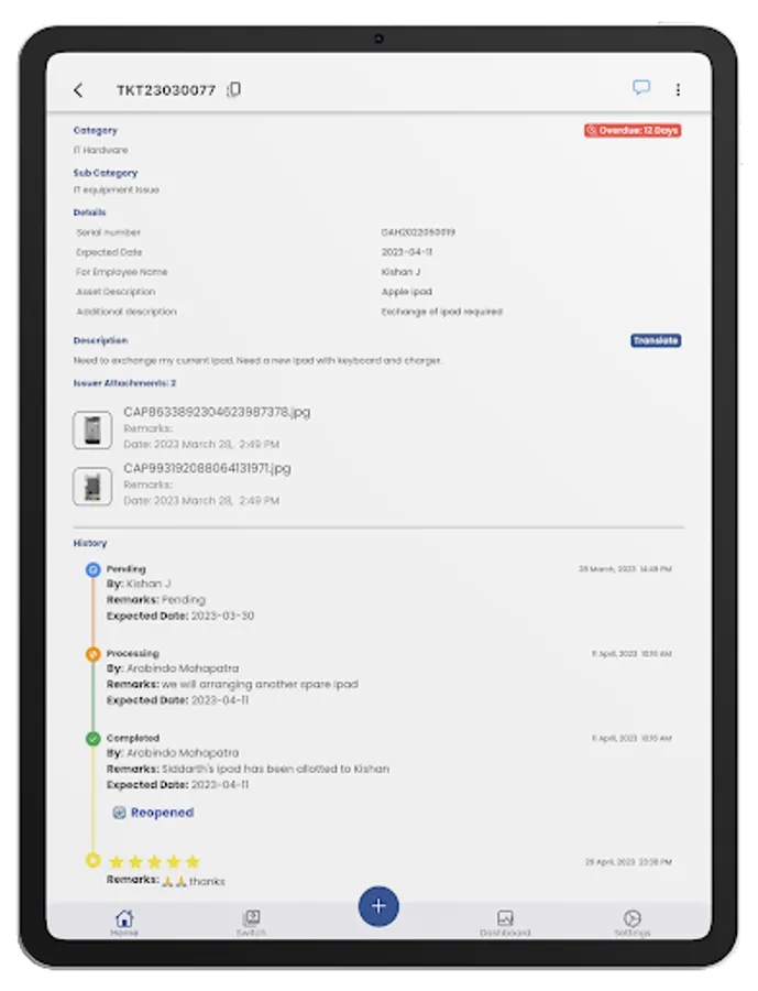 This web & mobile application provides structured issue processing with predefined customizable workflows, activity assignment, quick document upload, and easy tracking of timelines with alert systems at all stages of the ticket lifecycle. This secure and scalable software can be easily configured for any kind of organization and can be integrated with their external partners (Vendors, Clients) using industry-standard workflows.