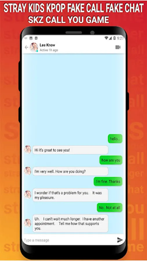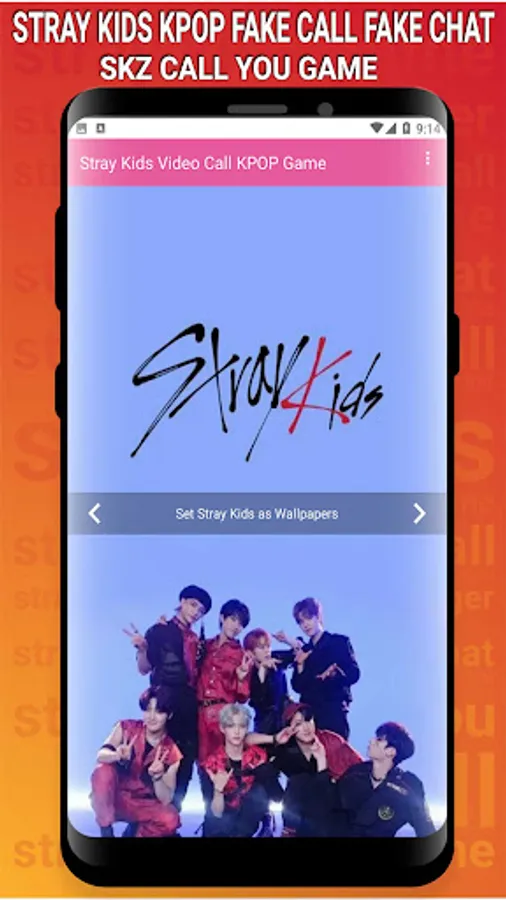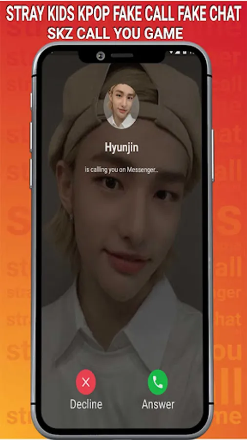 Stray Kids fake video call and chat messenger simulation is a prank game app that simulate Stray Kids call you and also chat with Stray Kids all member Bang Chan, Lee Know, Changbin, Hyunjin, Han, Felix, Seungmin, or I.N. The app will entertain and fun for you at your free time because you will get an incoming call from Stray Kids your KPOP idol. The chat messenger with Stray Kids itself also comes with fake call and video call from Stray Kids member. Using this app you can prank and show off to your friends by saying look… I have chat with Stray Kids because the chat simulation feature is very similar to real chat message. You send the text and they will reply to your text. Or, you can also brag to your friends by saying look.. I get an incoming call or video call from Stray Kids. So if you are true ENGENE, wait no more, download Stray Kids fake call for free today.