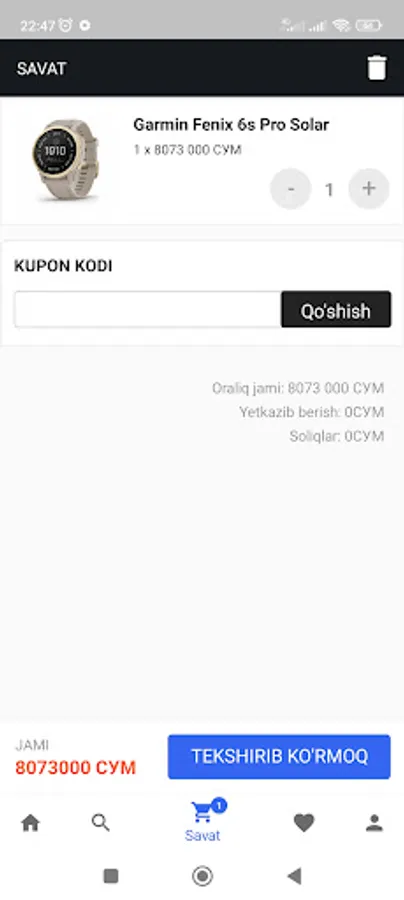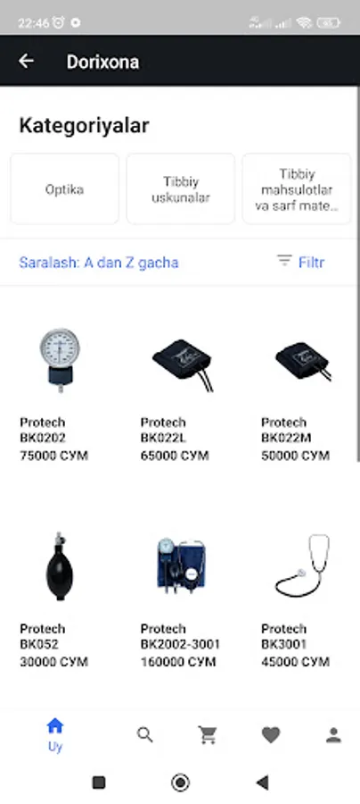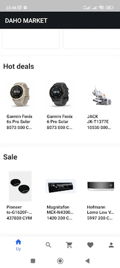Online tovarlarni sotib olish uchunn mobil ilova. Foydalanuvchilarga xarid buyurtmasini yaratish, to'lov usulini tanlash va buyurtmani Internetda yetkazib berish imkonini beradi. Kerakli tovarlar yoki xizmatlarni tanlagandan so'ng, foydalanuvchi odatda mobil ilovaning o'zida to'lov va etkazib berish usulini tanlash imkoniyatiga ega.