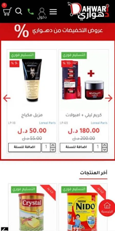 • توفر خدمة دهواري اكسبرس و هي خدمة التوصيل الفوري للمنتج