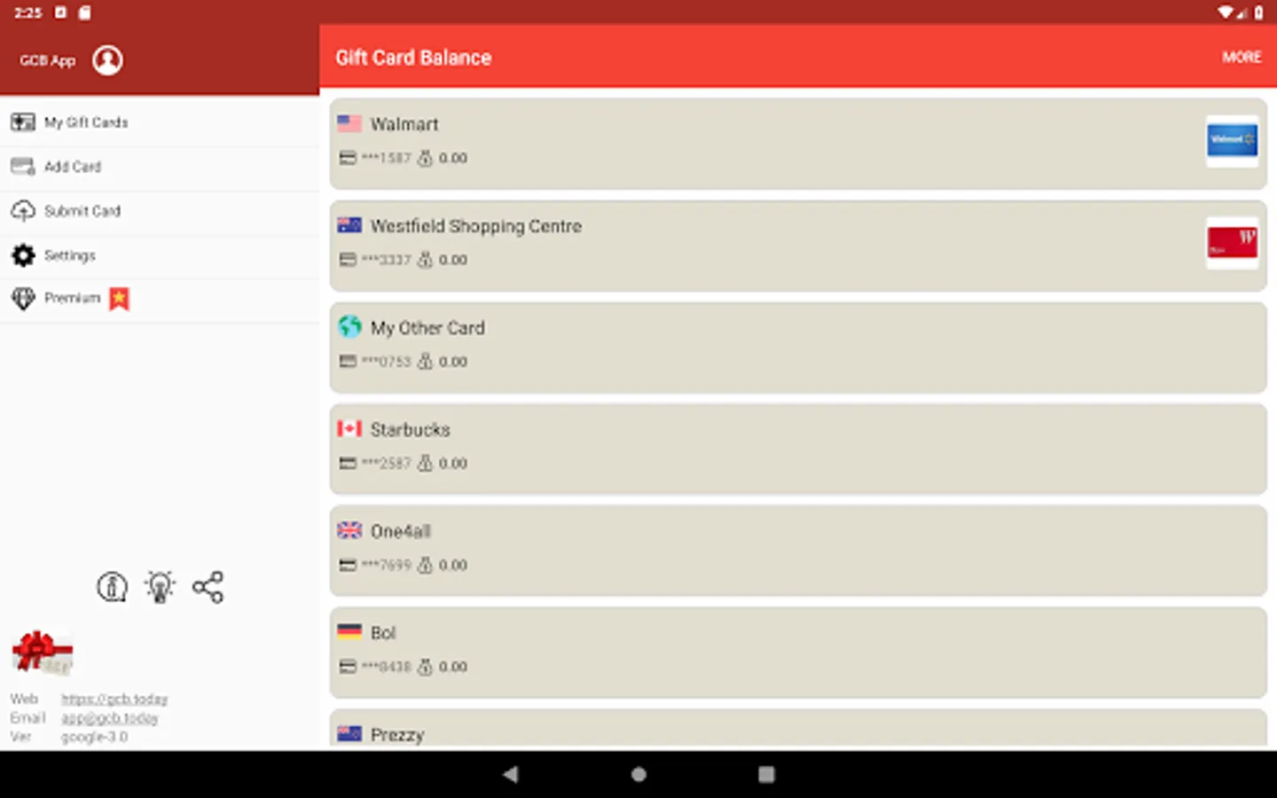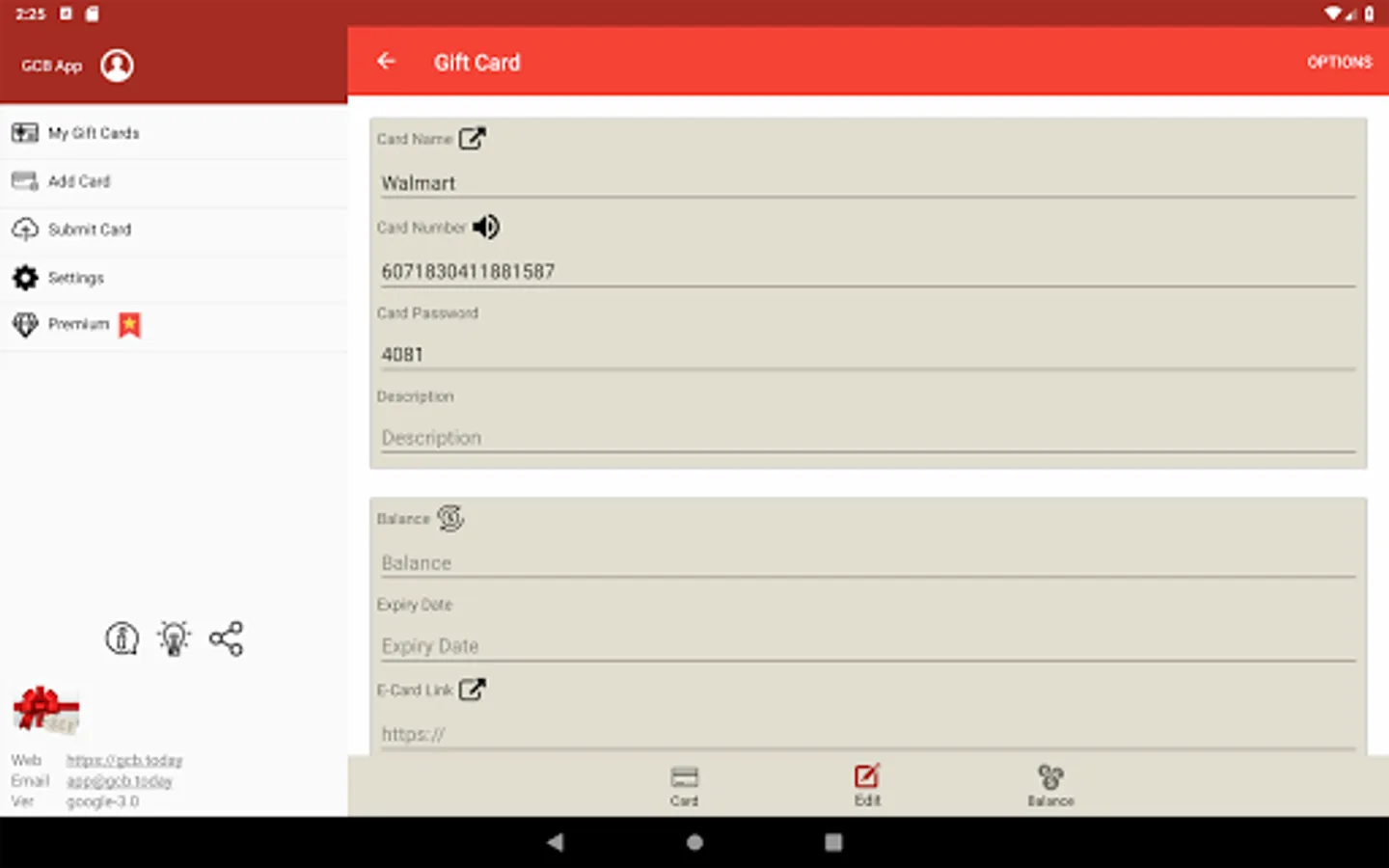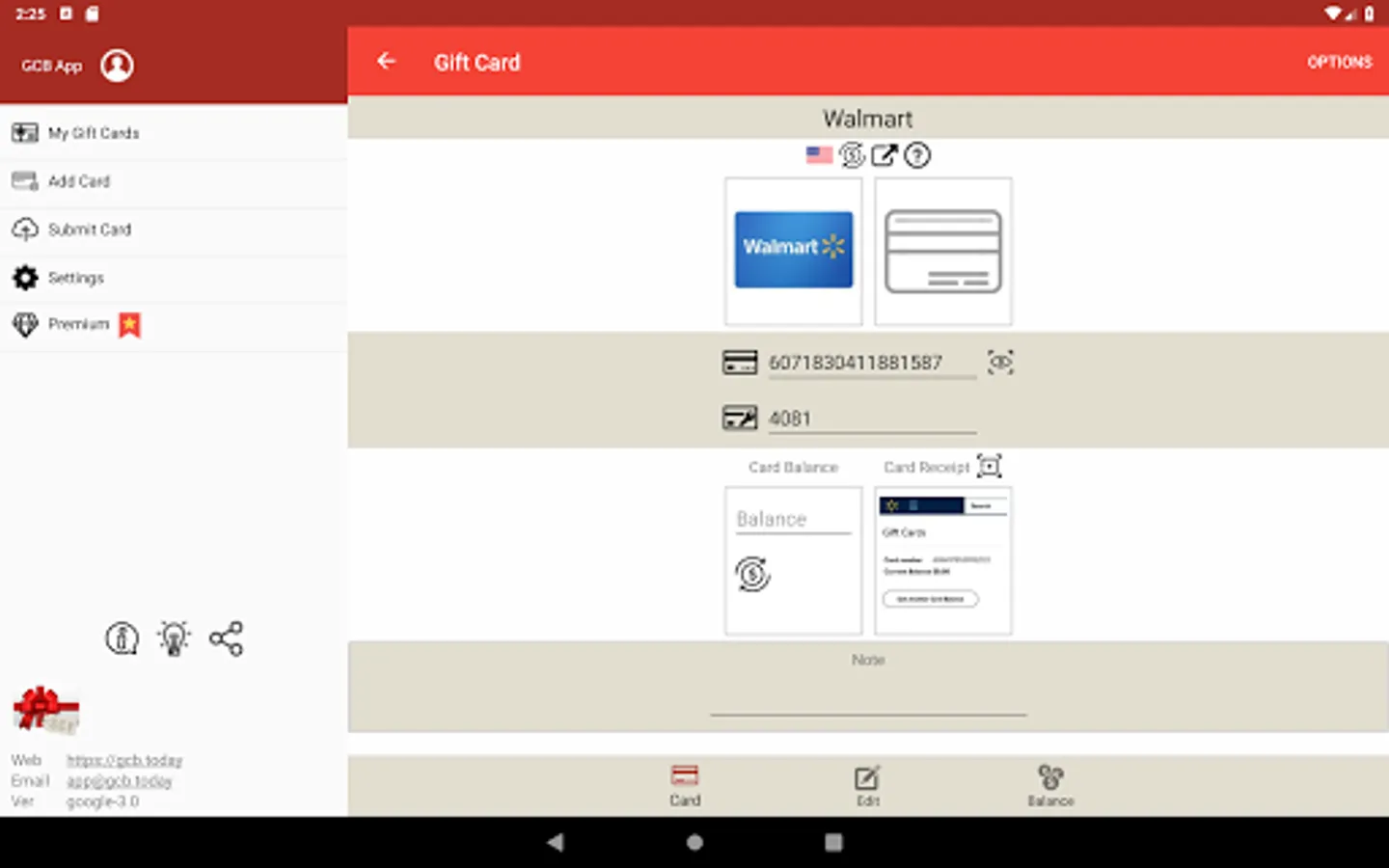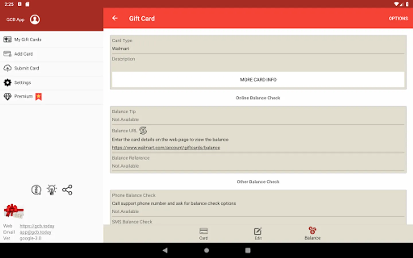 Gift Card Balance (GCB) check gift card balance live. The mobile gift wallet offers a simple yet accurate way to retrieve real time card balances since 2012. We strive to provide the most accurate and up-to-date information of gift cards worldwide! Balance check is performed by connecting directly to card merchant website. All giftcard records are 100% stored in your local device. Visit our innovative online community for more details: https://gcb.today