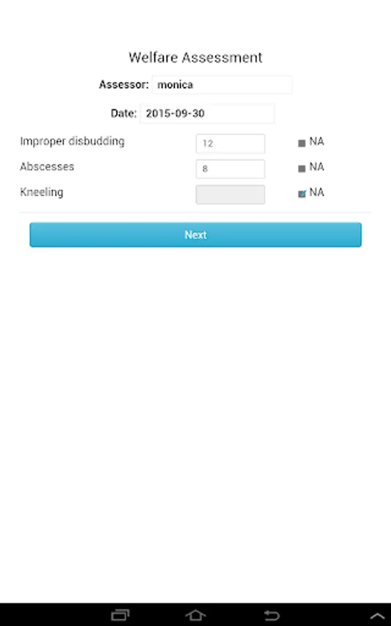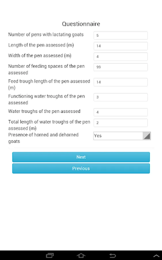 The AWINGoat app enables farmers, veterinarians and technicians to collect, store and download the indicators included in the AWIN welfare assessment protocol for adult dairy goats (first level welfare assessment, http://dx.doi.org/10.13130/AWIN_goats_2015 ).