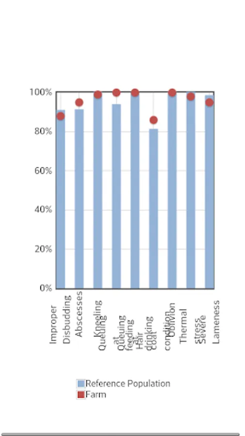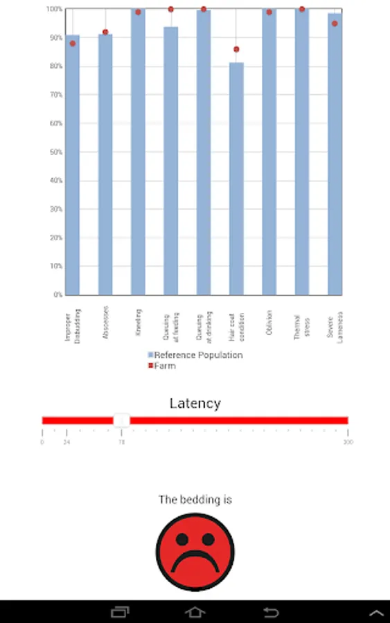 The app generates an immediate output, which gives a visual feedback about the welfare of assessed goats, highlights positive conditions and enables comparison with a reference population. Full database consisting of all the collected data can be downloaded in CSV format.