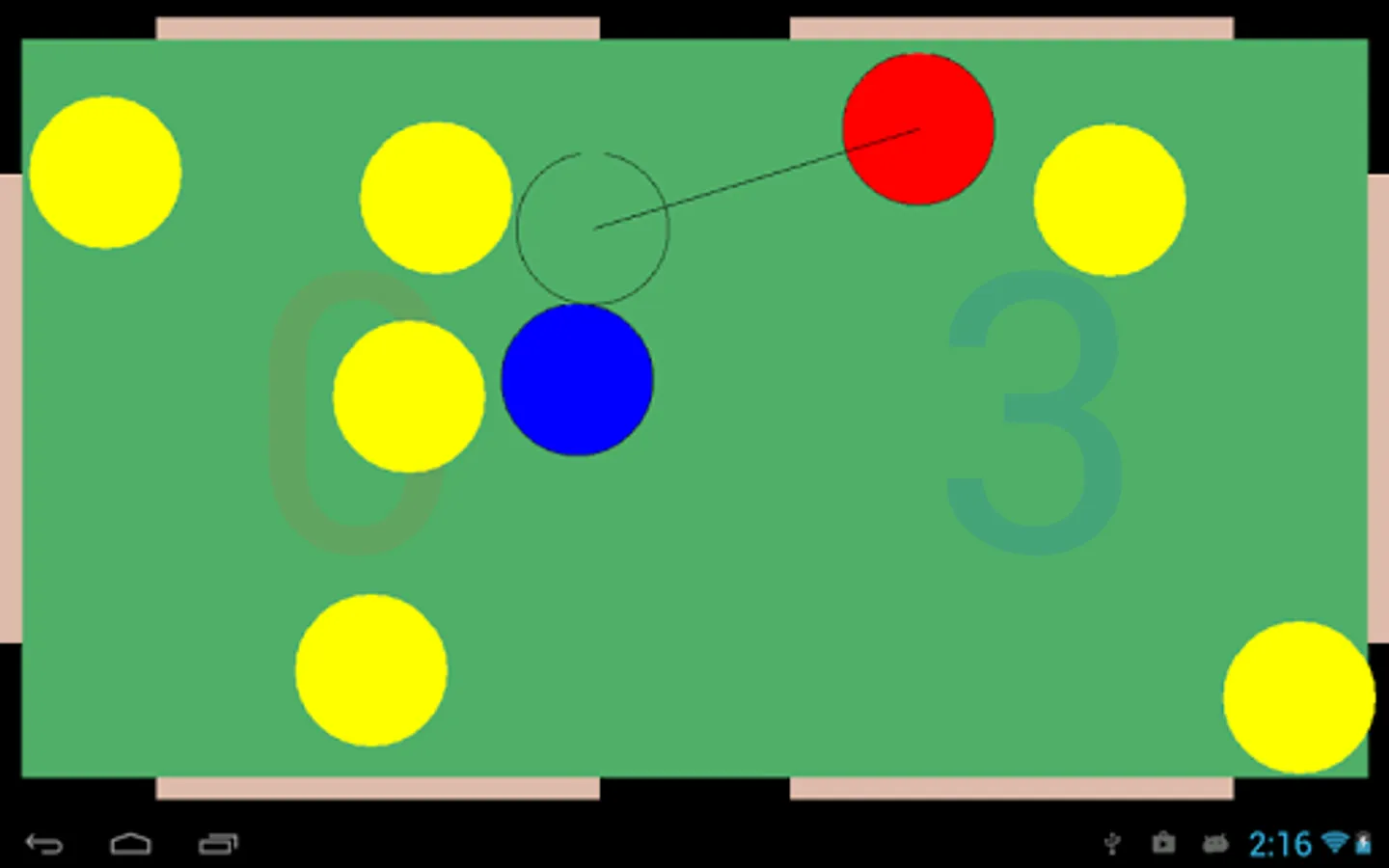Touch on the screen to set direction. Touch on the cue ball to strike.