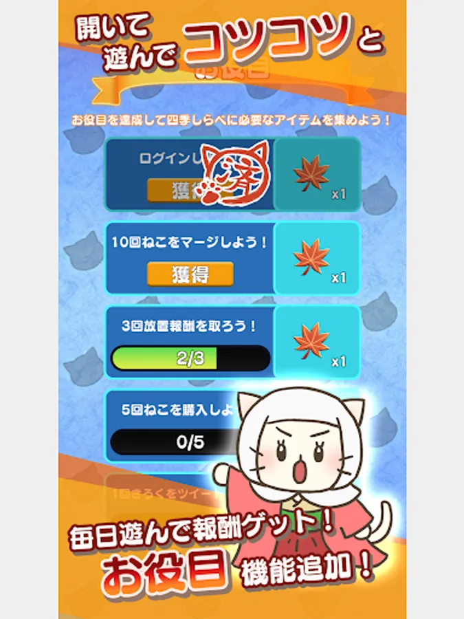 An easy-to-operate casual game featuring characters from the popular anime "Nekoneko Nihonshi"!