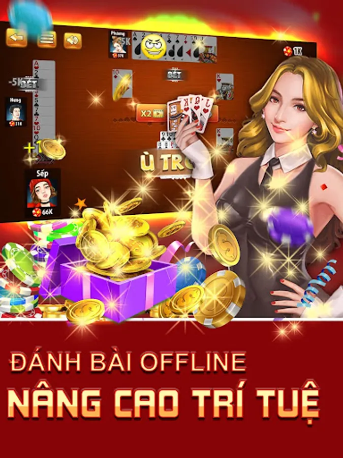 Đánh bài dân gian tiến lên miền nam phiên bản offline cực kỳ hấp dẫn. Tải chơi ngay để trãi nghiệm cảm giác đại gia vung cả tỉ CHIP vào đánh bài. Bên cạnh sự phát triển của studio bên mình còn cho ra những sản phẩm đình đám khác như: tiến lên đếm lá "tien len dem la", tiến lên miền bắc "tien len mien bac", sâm lốc "sam loc", mậu binh "mậu binh" - xập xám "xap xam", phỏm "phom" - đánh phỏm - tá lả "ta la", tứ sắc "tu sac" - tusac, cát tê "cat te" - sắt tê "sat te" - catte, liêng "lieng", bài cào "bai cao", cào tố "cao to", xì phé "xi phe" - xì tố "xi to".
