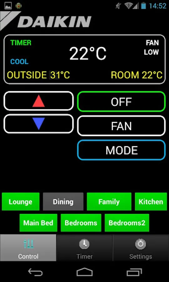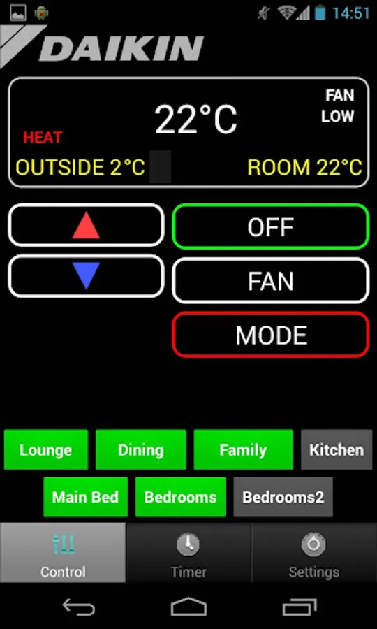 Control you Daikin Ducted Air Conditioner from your Android device. This app, in conjunction with Daikin’s BRP15A61 Wi-Fi Interface (SKYFi) will provide the majority of functions already available via the Daikin wall mounted remote control panel. Standard functions such as On/Off, temperature, fan speed and mode of operation are easily set or monitored via the App.