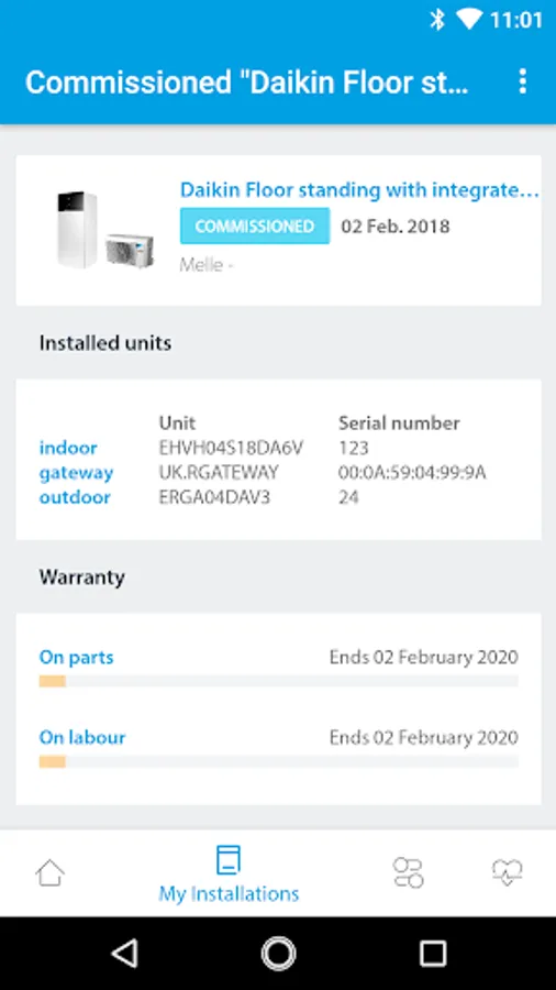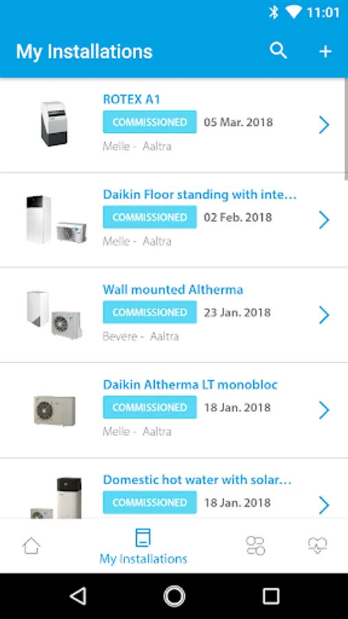 This part allows the installer to register an installation within seconds. Manual input is minimized thanks to a smart QR code scanner that enables the app to find the product name and serial number of each scanned unit. The commissioning document can be uploaded by simply taking a picture with any mobile device. GPS tracking allows the app to recognize the location of the installation instantly. The app is connected with Stand By Me, so all installations registered via the app will be shown in the installation database of the professionals Stand By Me account.