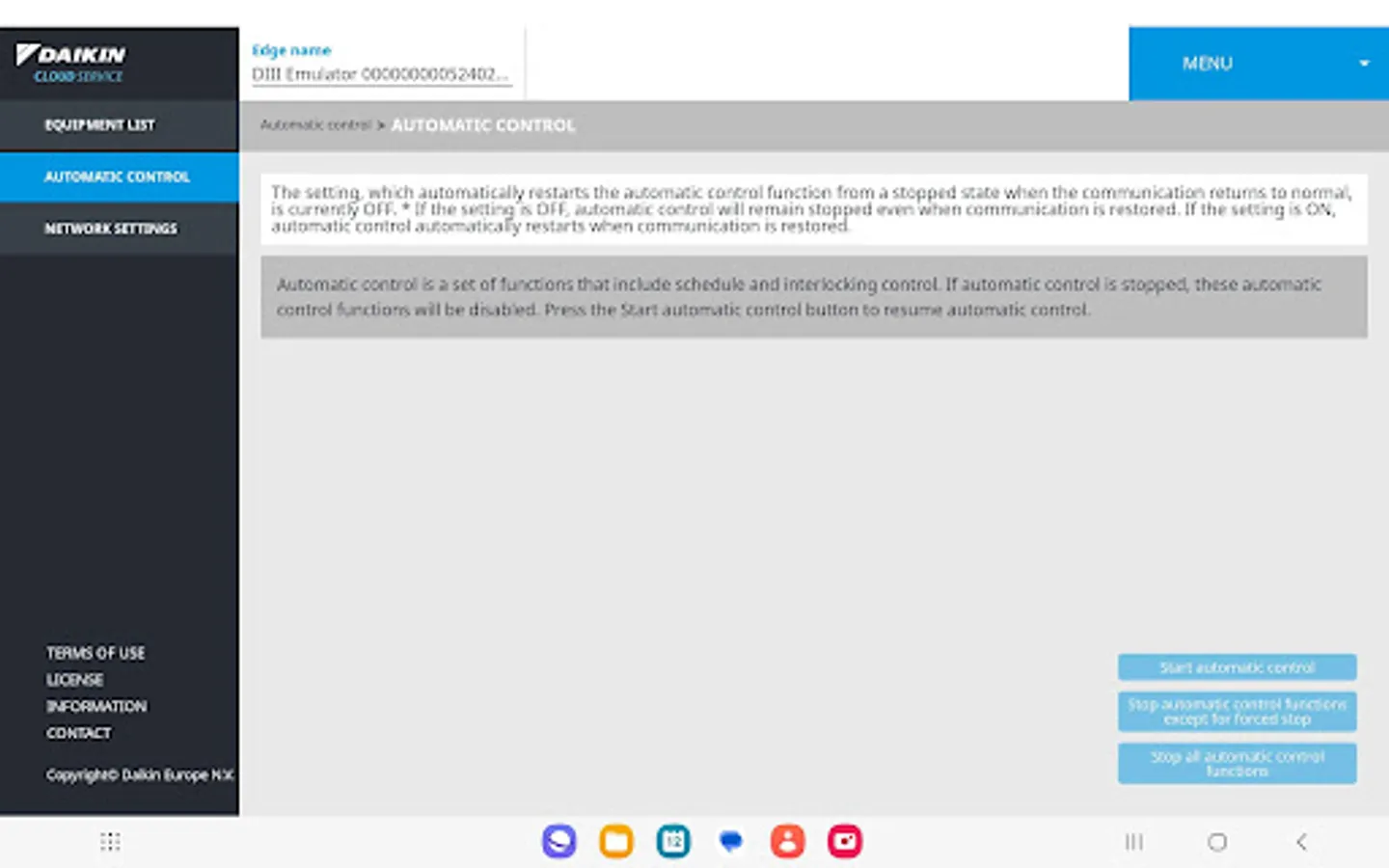 This application can be used as a backup application for the Daikin Cloud Plus platform. In your local network you can connect to the DC+ Edge controller to perform basic actions on your setup.