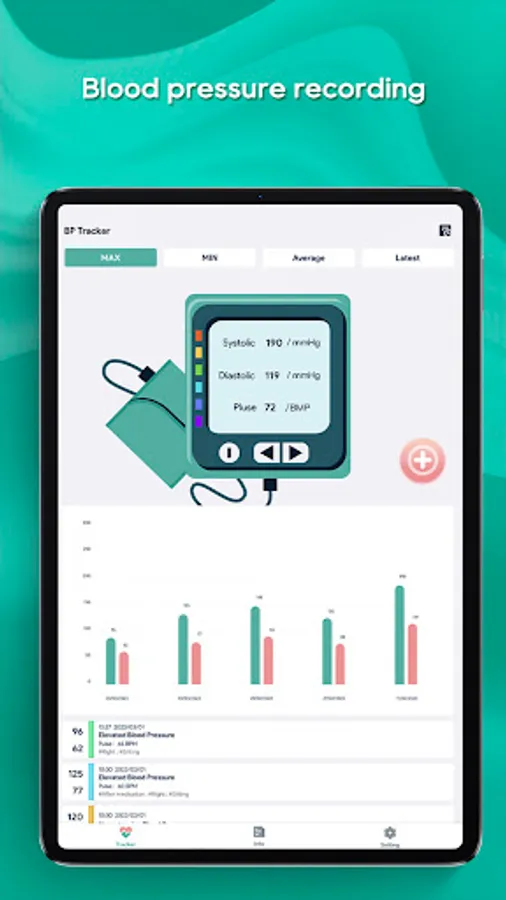 Key features of the Blood Pressure Tracker app include: