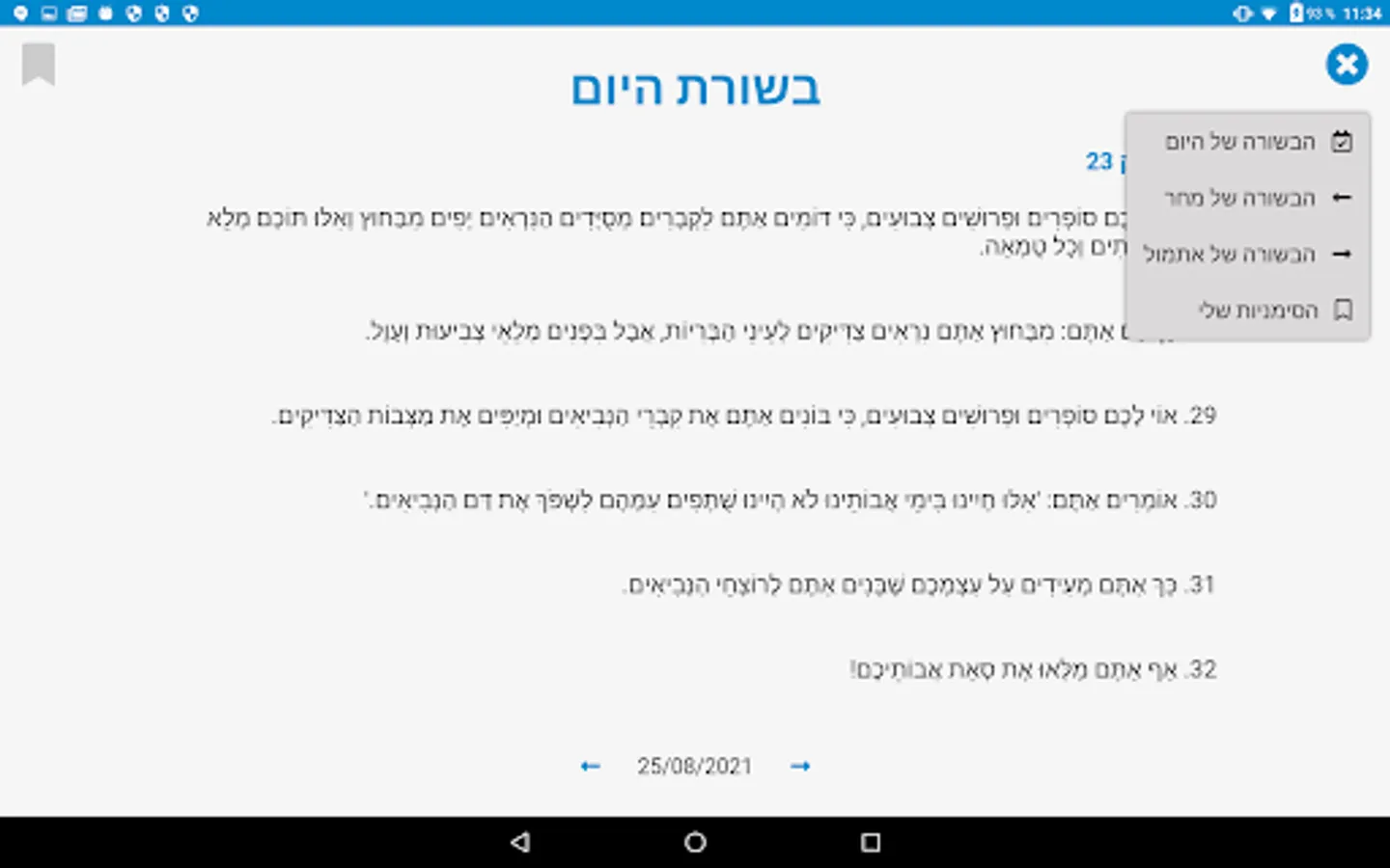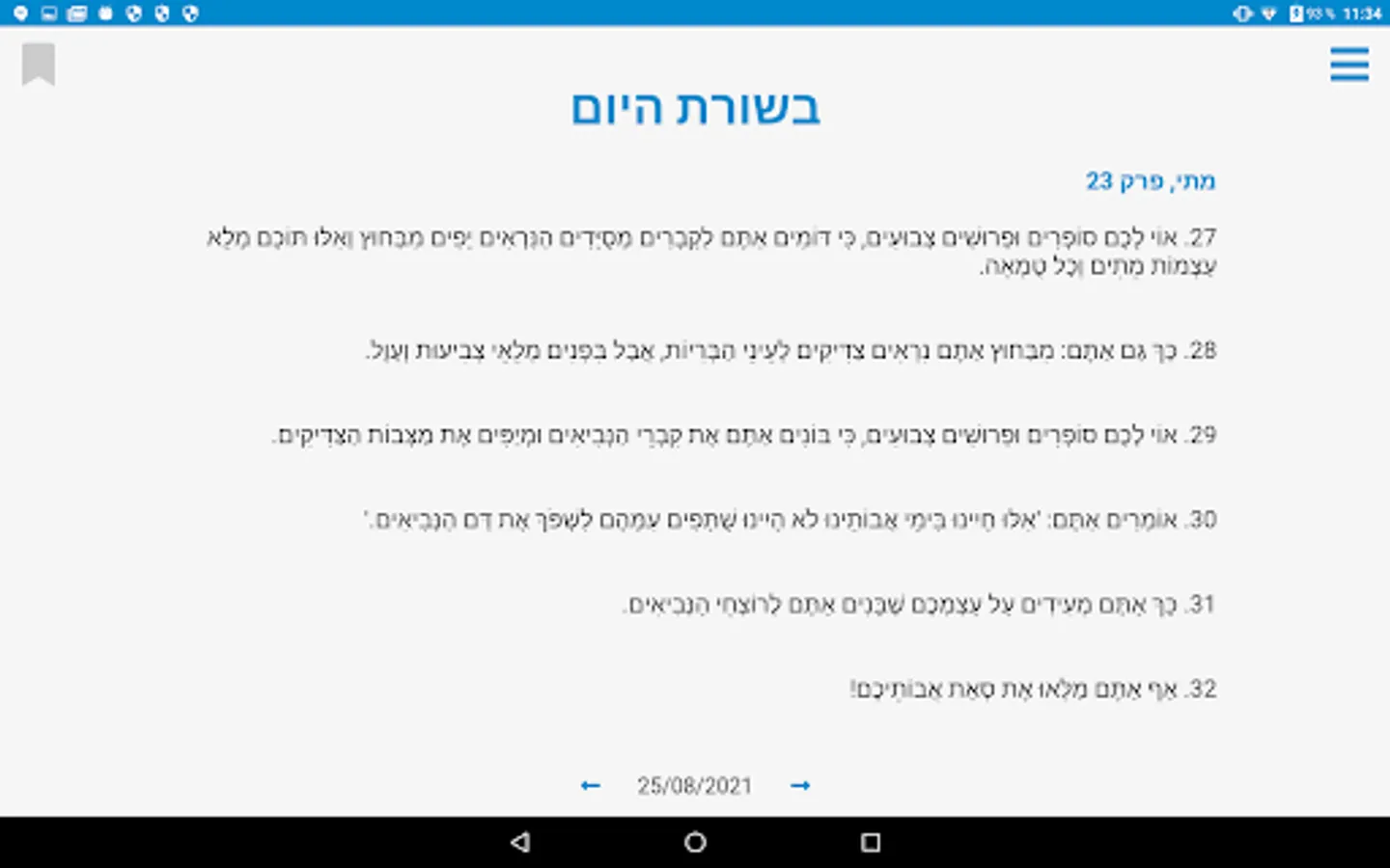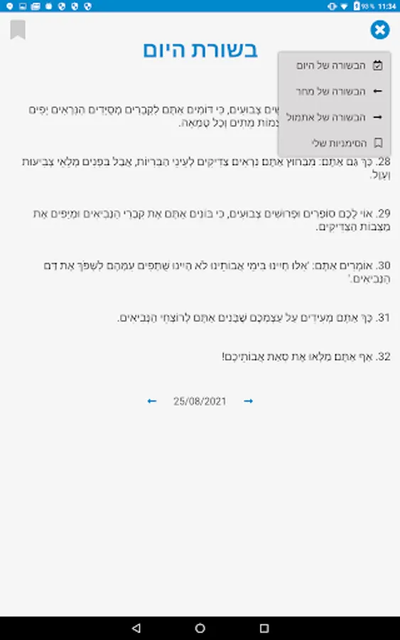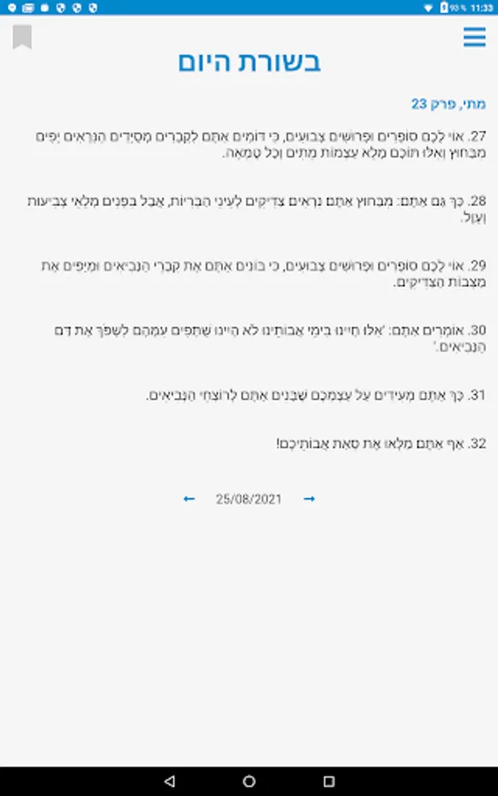 Daily Gospel in Hebrew Screenshots